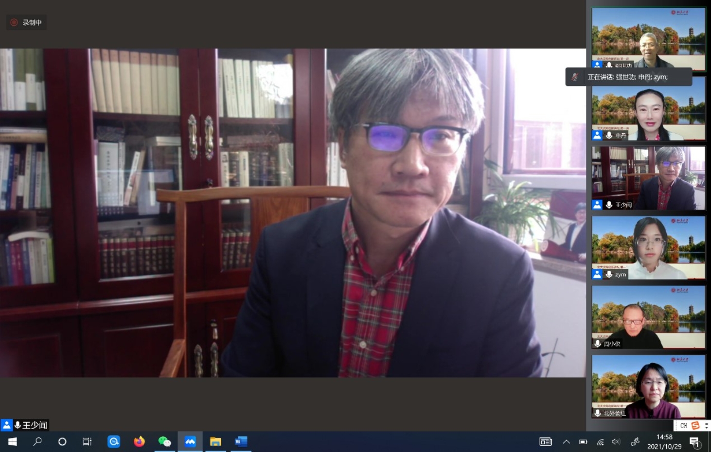 申丹作题为“超越亚里士多德叙事研究传统的理论创新:‘隐性进程’与双重叙事进程”的主讲报告。2021春季,国际顶级杂志《文体》(Style)曾以主题特刊形式,邀请多国学者集中探讨申丹首创的该理论。