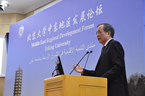 2017年1月24日至25日,“北京大学中东地区发展论坛”在北京大学召开。应邀出席本次论坛开幕式的国内外嘉宾有外交部副部长张明,外交部前副部长杨福昌;俄罗斯总统负责与伊斯兰合作组织及其他伊斯兰国际组织关系特别代表韦尼亚明·V·波波夫博士,美国国家安全委员前中东事务高级主任弗林特·莱弗瑞特教授,阿拉伯国家联盟秘书长代表、阿拉伯国家联盟驻北京办公室代办穆罕穆迪·沙菲博士,海合会最高委员会咨询机构成员、阿联酋政策研究中心主任伊卜提萨姆·凯特比博士,伊朗德黑兰大学世界研究院前院长穆罕穆德·马兰迪博士,北美阿拉伯银行家协会前主席哈尼·冯德克利博士;外交部相关司局负责人、中国驻中东地区国家的前大使和资深外交官,中共中央对外联络部、国务院发展研究中心、中国社会科学院、全国友协的领导和专家;苏丹、俄罗斯、卡塔尔、突尼斯、也门、伊拉克、巴勒斯坦等国驻华大使,阿曼、巴黎、利比亚、摩洛哥、阿联酋等国家驻华使馆的代办、公使,以及来自阿尔巴尼亚、巴黎、伊朗、约旦、科威特、哈萨克斯坦、吉尔吉斯斯坦、毛里塔尼亚、摩洛哥、沙特、突尼斯、美国、法国使馆的代表。北京大学校长林建华、北京大学副校长李岩松、校长助理王博、北京大学燕京学堂院长袁明,以及北京大学外国语学院、历史学系、国际关系学院等相关院系的领导与师生参加了本次论坛。