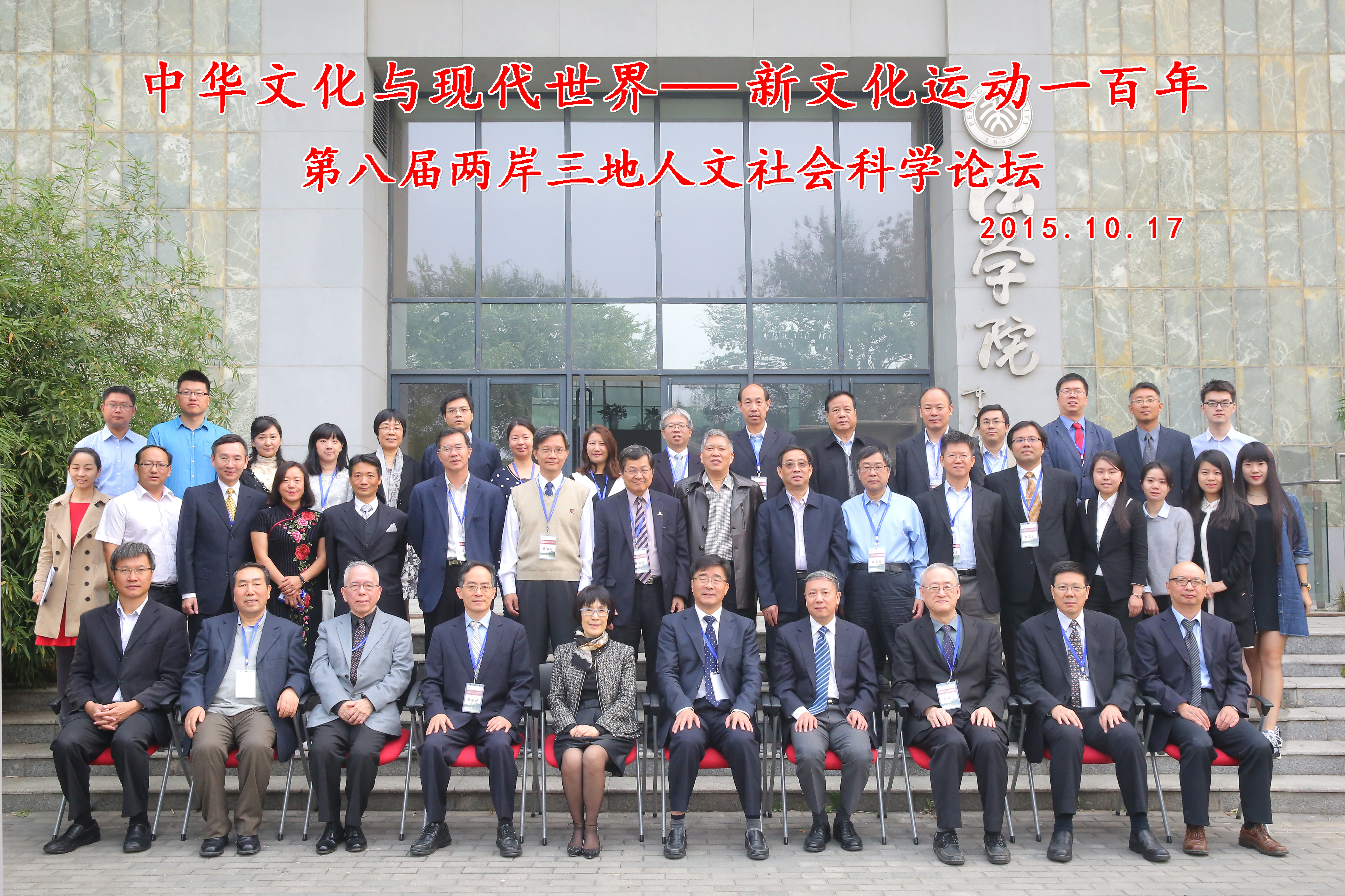 2015年10月17日至18日,第八届两岸三地人文与社会科学论坛在北京大学凯原楼学术报告厅举行。本次论坛由北京大学、中国社会科学院、复旦大学、南京大学、台湾大学、“台湾中央大学”、香港中文大学等七所院校共同主办,北京大学承办,北京大学社会科学部协办。论坛主题为“中华文化与现代世界——新文化运动一百年”。