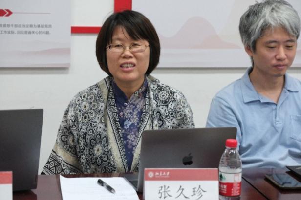 张久珍、孟庆楠作为院系代表,分别聚焦院系当前的工作进展、发展面临的掣肘瓶颈、未来的战略规划等方面进行了全面介绍,就跨学科交叉、人才培养和管理、项目工作合作、智库建设等方面为社科部建言献策。