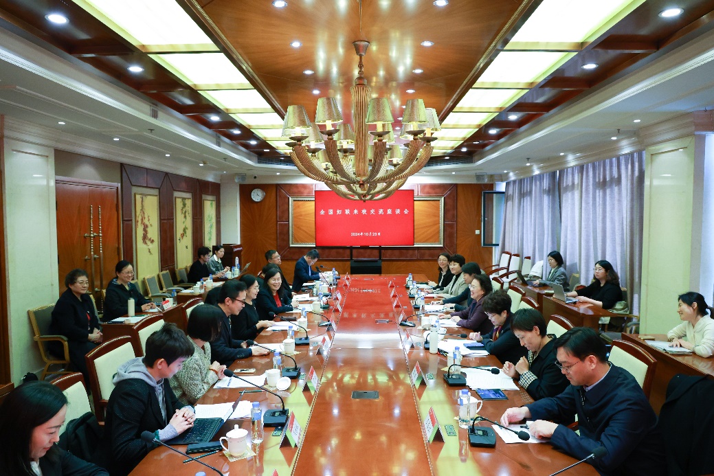10月23日,全国妇联党组书记、副主席、书记处第一书记,中国妇女研究会会长黄晓薇带领全国妇联相关部门负责人来到北京大学座谈交流。北京大学党委书记郝平,党委副书记、纪委书记,国家监委驻北京大学监察专员顾涛,党委副书记、副校长宁琦,校务委员会副主任,中外妇女问题研究中心主任叶静漪出席活动。全国妇联副主席、书记处书记、党组成员、中国妇女研究会副会长冯玲参加活动。