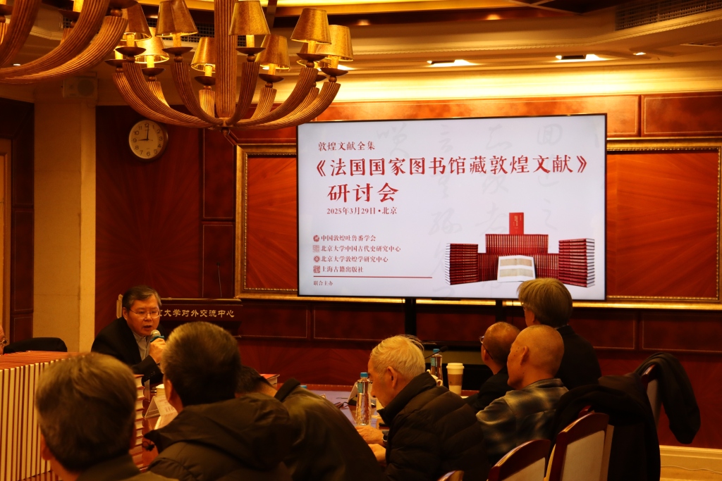 2025年3月29日,《法国国家图书馆藏敦煌文献》(全彩版)研讨会在北京大学召开,北京大学副校长王博,北京大学教授、全国高等院校古籍整理研究工作委员会原主任安平秋,中宣部出版局古籍处处长、二级巡视员章隆江,全国高等院校古籍整理研究工作委员会秘书长卢伟等领导出席了会议。会议由中国敦煌吐鲁番学会副会长、首都师范大学历史学院院长刘屹主持,北京大学副校长王博,中宣部出版局古籍处处长、二级巡视员章隆江致辞,中国敦煌吐鲁番学会会长、北京大学博雅讲席教授、《法国国家图书馆藏敦煌文献》(全彩版)主编荣新江介绍项目编纂工作,上海古籍出版社社长吕健介绍项目编辑出版情况。随后,首都师范大学教授、中国敦煌吐鲁番学会名誉会长郝春文,敦煌研究院副院长、中国敦煌吐鲁番学会副会长张元林,中华书局编审、中国敦煌吐鲁番学会原副会长及秘书长柴剑虹,故宫博物院研究馆员王素,中华书局原执行董事、山东大学文学院教授徐俊,中山大学社会学与人类学学院教授姚崇新,北京师范大学历史学院教授雷闻,浙江大学古籍整理研究所教授余欣,首都师范大学教授、中国敦煌吐鲁番学会秘书长游自勇,中国国家图书馆古籍馆副馆长、研究馆员刘波等分别作交流发言,北京大学教授、全国高等院校古籍整理研究工作委员会原主任安平秋做总结发言,北京大学中国古代史研究中心副主任史睿作闭幕讲话。参与《法藏》编纂的师生出席会议。与会专家学者就《法国国家图书馆藏敦煌文献》(全彩版)的出版创新及重要价值等话题,深入总结法藏敦煌文献的新整理成果,探讨未来敦煌文献及中华传统文化与典籍研究与出版的发展新方向。